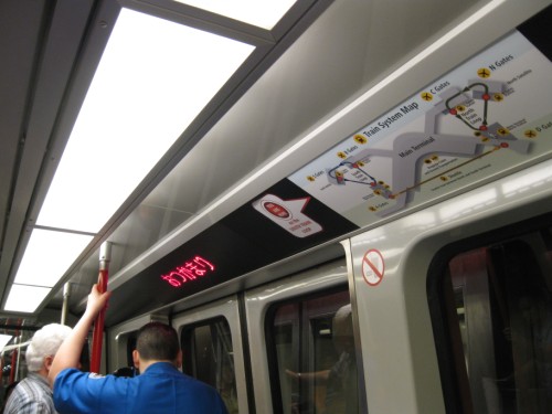 いたるところに日本語が併記されているシアトルタコマ国際空港。 さすがに「エレベーター」は書かなくてもわかると思うんだけど、とにかくこんな感じで、空港内移動用の列車の案内表示・放送にも、日本語がある。